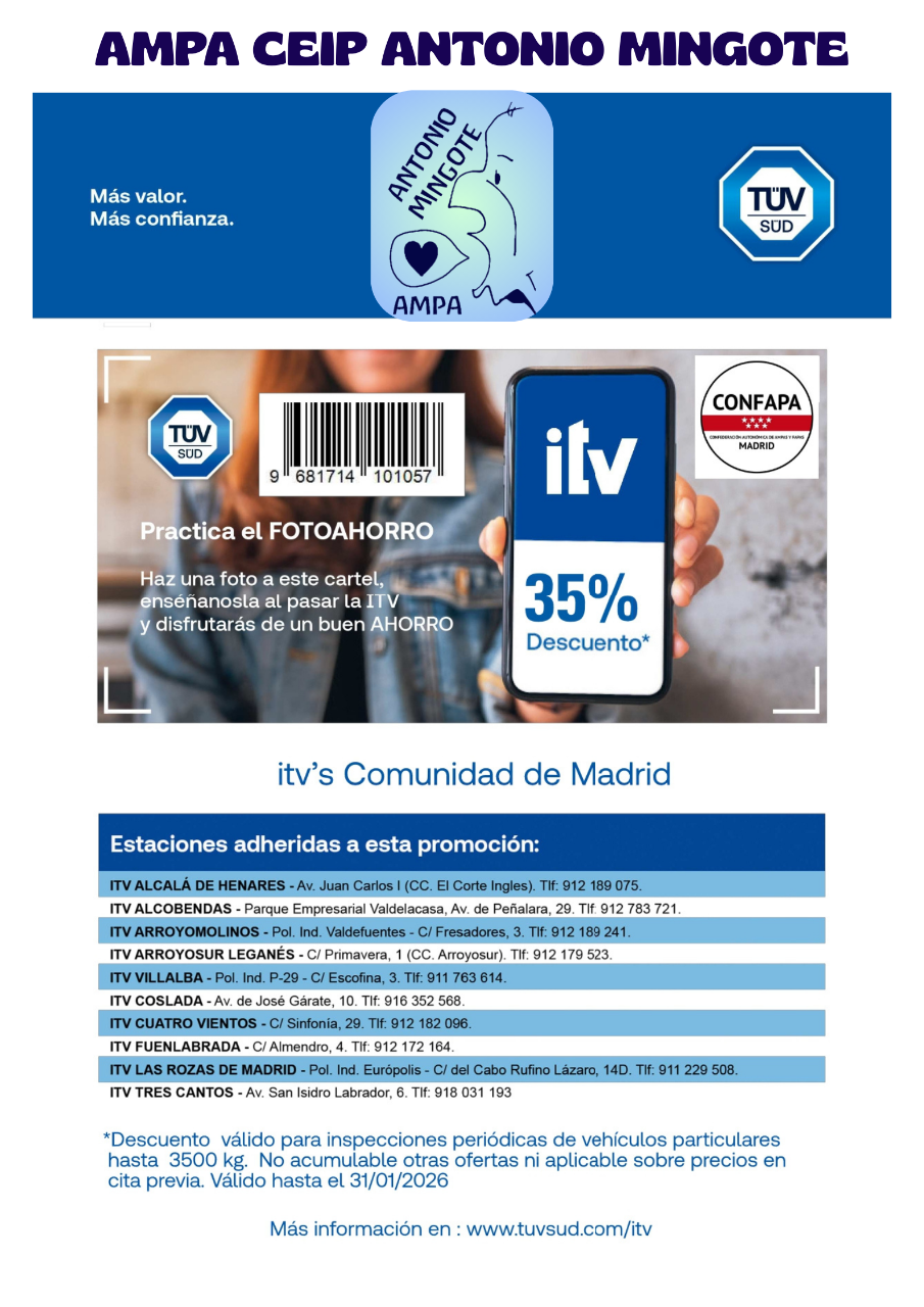 Sólo para familias socias de la AMPA del CEIP Antonio Mingote.